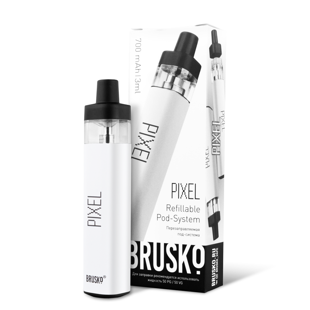 Перезаправляемая Под-Система Бруско Пиксель (Brusko Pixel) 700 mah, Белый - купить в Краснокамске